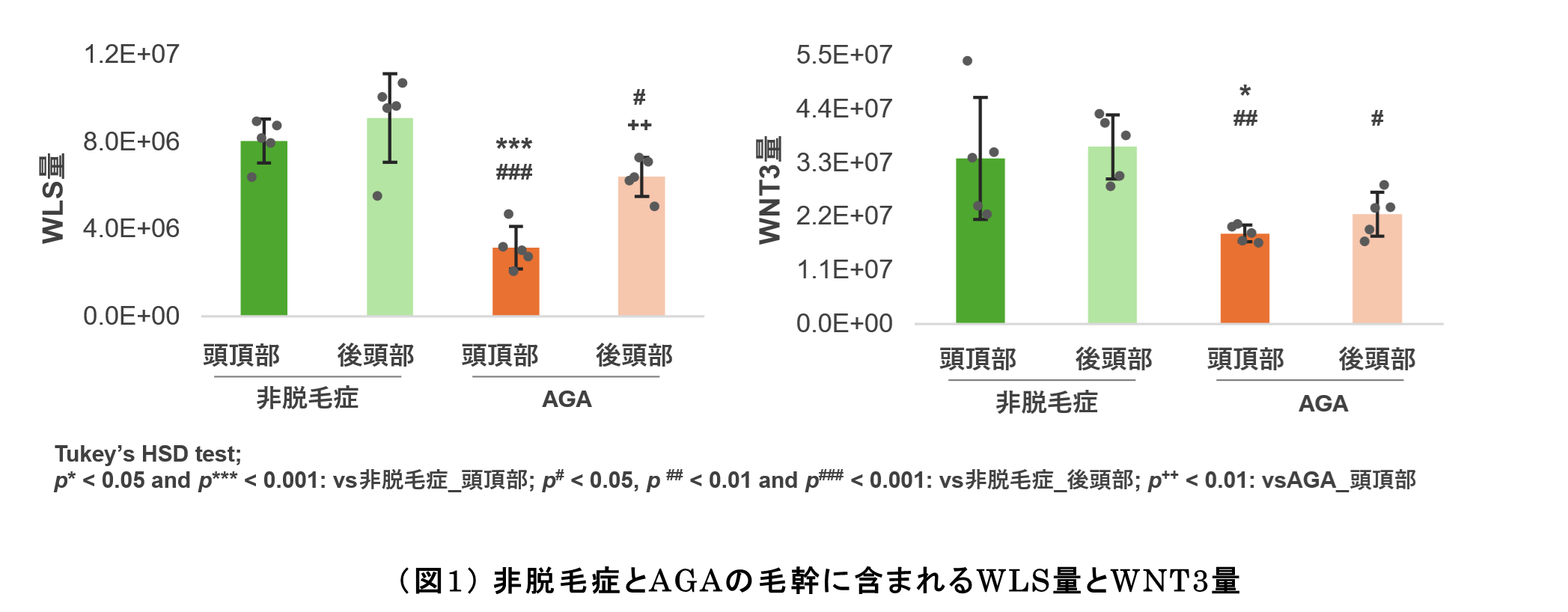 脱毛症の毛幹でWLSやWNT3の有意な減少を確認