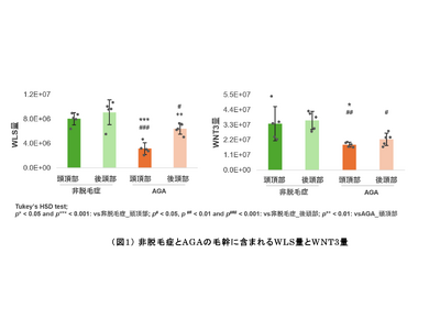 毛髪・美容・健康・医療のウェルネス事業をグローバル展開する株式会社アデランス(本社:東京都品川区、代表取締役社長 鈴木 洋昌)は、男性型脱毛症(AGA)の頭頂部の毛幹(肌から露出している毛髪の部分)において、毛髪関連分子WNTLESS(WLS)※2やWNT3※3が有意に減少していることを発見しました。培養細胞を用いて、AGAの主要な原因物質であるジヒドロテストステロン(DHT)を添加したところ、やはり、WLSやWNT※3類の遺伝子発現が減少していました。今回の成果の一部は、12月3日(水)~5日(金)に横浜国際平和会議場(神奈川県横浜市)で開催された第48回日本分子生物学会年会にて発表いたしました。