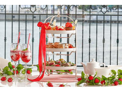 同店では、ティータイムに季節ごとに内容を変えるシーズナルアフタヌーンティーをご用意しており、1月から4月までは、いちごの赤とホワイトチョコレートやココナッツの白が美しく調和する可憐で華やかなアフタヌーンティーをご提供いたします。