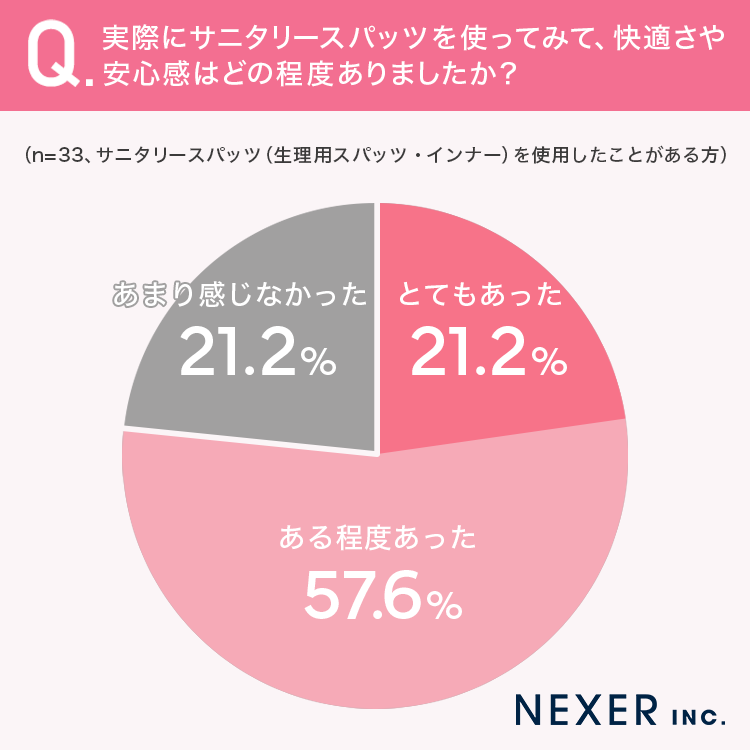 実際のところ、サニタリースパッツを使用した方は「快適さや安心感」についてどう感じているのでしょうか。