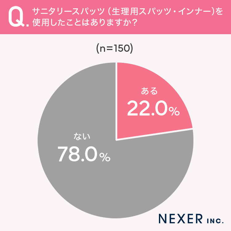 40代以下の女性150名に対して、サニタリースパッツ(生理用スパッツ・インナー)の使用経験を調査しました。