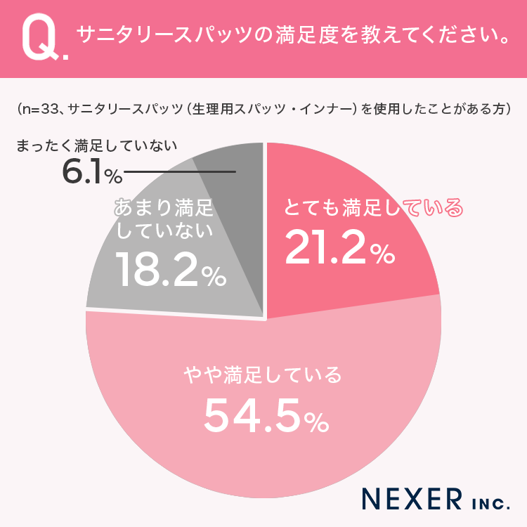 サニタリースパッツの満足度も高く、合計75.8%の方が「満足している」と回答しています。