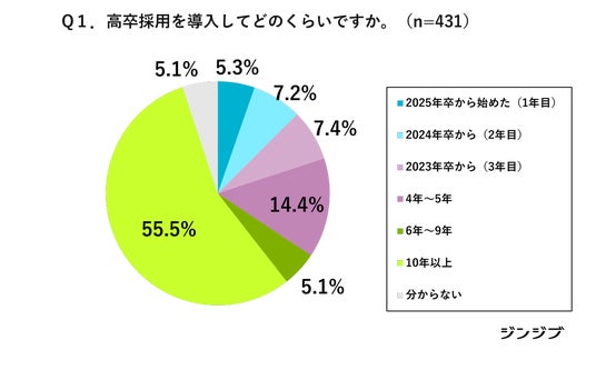 1.高卒採用を導入してどのくらいですか。(n=431)