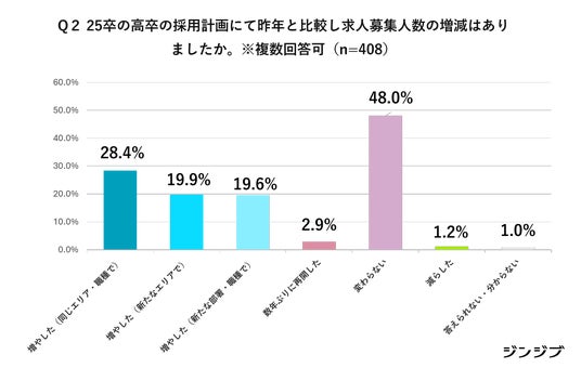 高校生の就職を支援している「ジンジブ」(大阪市)は 、高校新卒の採用担当者に向けて、2025年卒の採用活動の実態を調査するため、「25卒高卒採用振り返りアンケート」を行いました。