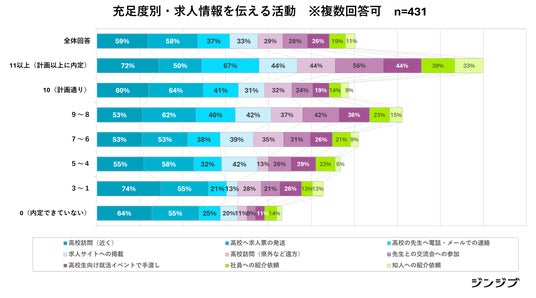 計画通りに採用充足できたと回答した方ほど、「高校訪問(近く)」「先生へ電話・メールで連絡」「先生との交流会」といった、学校との直接的な接点づくりに積極的でした。