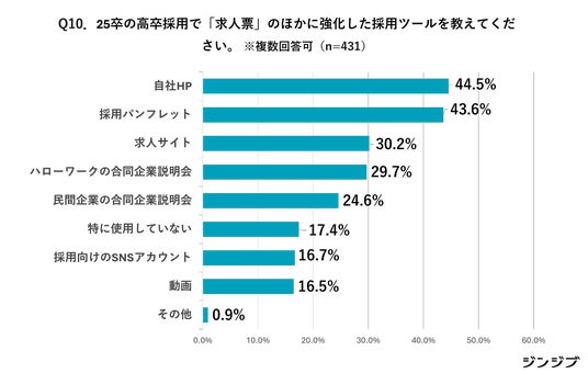 10.25卒の高卒採用で「求人票」のほかに強化した採用ツールを教えてください。※複数回答可(n=431)