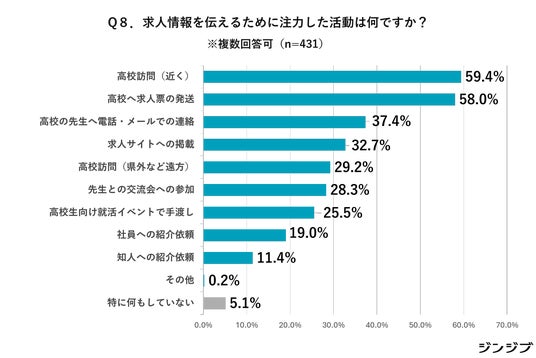 8.求人情報を伝えるために注力した活動は何ですか? ※複数回答可(n=431)