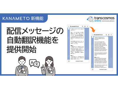 transcosmos online communications株式会社は、2025年12月16日から、LINEを活用したDXツール「KANAMETO(カナメト)」に、「配信メッセージの自動翻訳機能」を追加・提供開始いたしました。