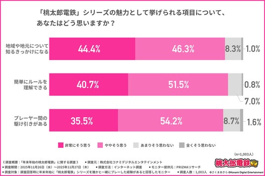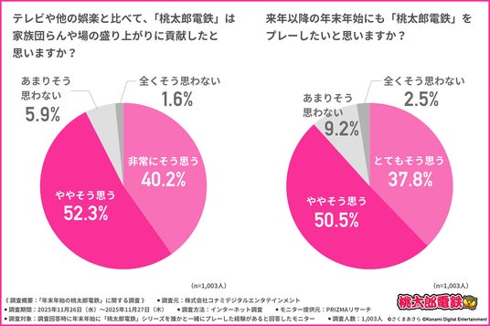 また「桃鉄」のプレーを通じて、「場が盛り上がった(非常に当てはまる)」(43.9%)、「会話が増えた(非常に当てはまる)」(36.9%)と、年末年始の“会話量”増加にも寄与。