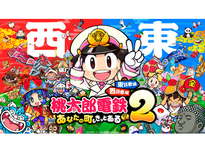 「東日本編」「西日本編」の2マップが登場し、それぞれのマップ単体でも、累計販売本数400万本を突破した『桃太郎電鉄 ~昭和 平成 令和も定番!~』の物件駅数・物件数を上回るボリュームとなっています。