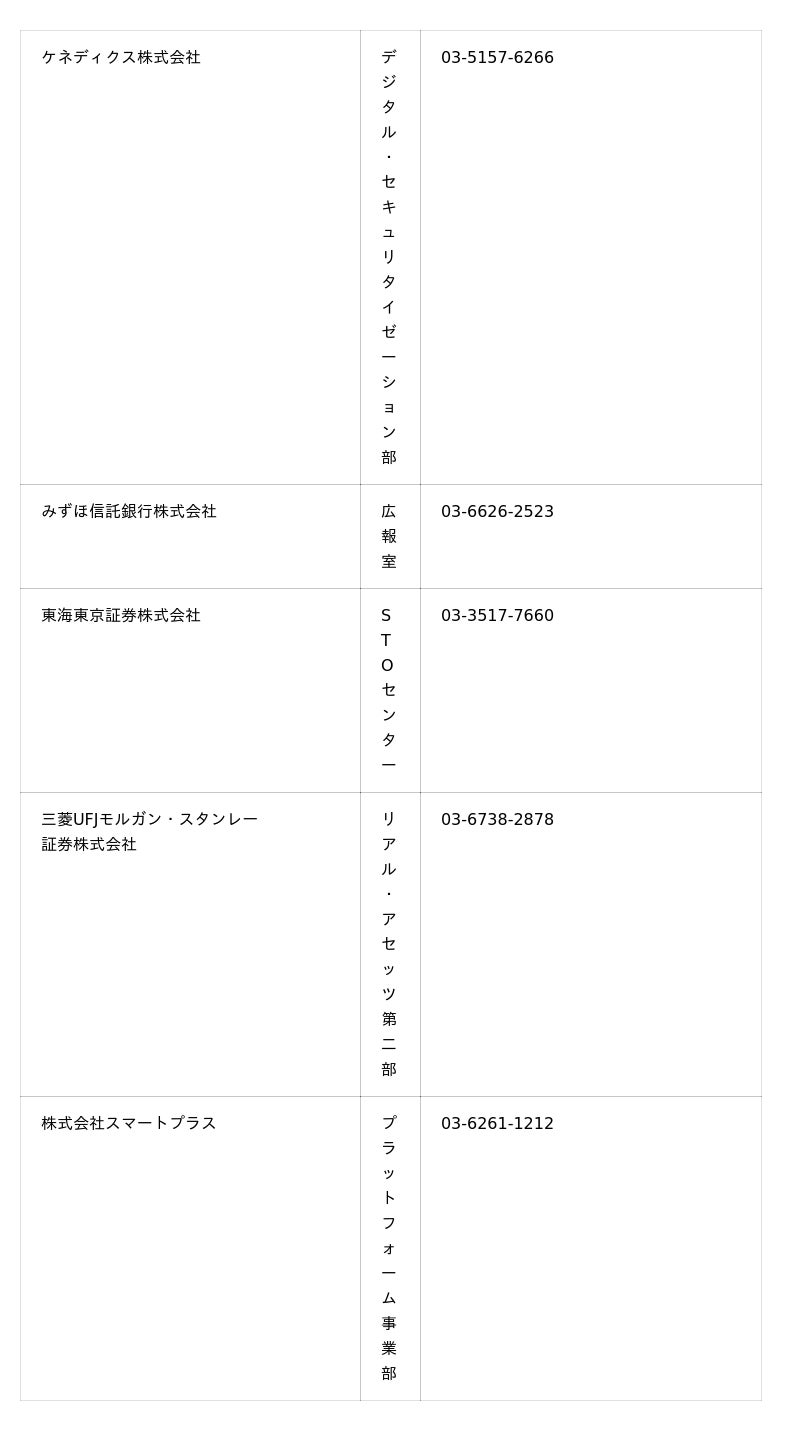 ケネディクス株式会社(代表取締役社長COO:寺本 光、以下「ケネディクス」)、みずほ信託銀行株式会社(取締役社長:笹田 賢一、以下「みずほ信託銀行」)、東海東京証券株式会社(代表取締役社長:北川 尚子、以下「東海東京証券」)、三菱UFJモルガン・スタンレー証券株式会社(取締役社長:小林 真、以下「三菱UFJモルガン・スタンレー証券」)及び株式会社スマートプラス(代表取締役:小林 紀子、以下「スマートプラス」)は、デジタルアセット発行・管理基盤「Progmat※1」(プログマ)を活用した、不動産セキュリティ・トークン※2(以下「本ST」)の公募に関して協業し、この度、募集・発行が完了いたしました。