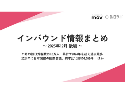 業界最大級のインバウンドビジネスメディア「訪日ラボ」及び 店舗向け集客一元化プラットフォーム「口コミコム」を運営する株式会社mov(代表取締役:渡邊 誠、本社:東京都渋谷区、以下mov)は、「インバウンドに関する最新トレンド・データ」「政府・自治体・企業などのインバウンド関連の取り組み」をはじめ、インバウンド対策に役立つニュースをまとめた「インバウンド情報まとめ【2025年12月後編】」を公開しました。