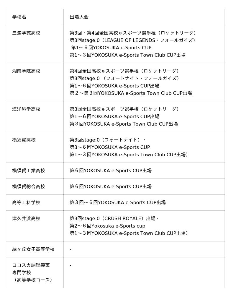 ※横須賀市では、eスポーツ部設立支援として、横須賀市内の高等学校等で、希望のあった高等学校にハイスペックPCを無償貸出しています。
