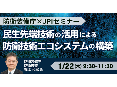 JPI(日本計画研究所)は、防衛装備庁 防衛技監 堀江 和宏 氏を招聘し、民生先端技術の活用による防衛技術エコシステムの構築と研究開発に関する取り組みについて詳説いただくセミナーを開催します。