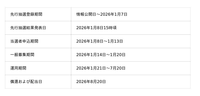 また、本ファンドは2026年1月14日(水)18時より先着順にて募集を開始いたします。