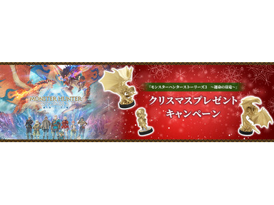 『モンスターハンターストーリーズ3 ~運命の双竜~』クリスマスプレゼントキャンペーン開催! 応募いただいた方の中から、ソフトと同時発売予定のamiibo「レウス」「レウスV」「ルディ」のゴールドバージョン(非売品)の3種のうち、抽選でいずれか1種をプレゼント!