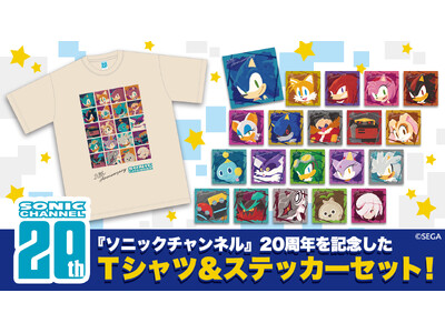 SONIC CHANNEL(ソニックチャンネル)」が、本年5月に20周年を迎えたことを記念して、オリジナルデザインのTシャツ&ステッカーセットを販売いたします。本日よりECサイト「セガストア オンライン」にて予約受付を開始いたしました。また、発売日当日からは「SEGA STORE TOKYO」においても販売いたします。