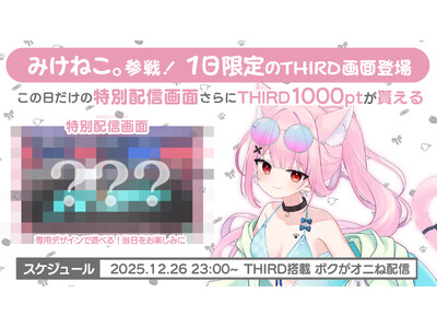 本配信では感情豊かなリアクションと視聴者との濃密な絆を持つ みけねこさんに「THIRD」を通じた配信者と視聴者が共に創り上げる体験をしていただきます。
