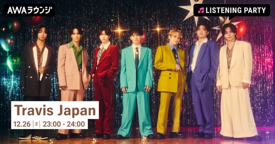 AWA株式会社(本社:東京都港区、代表取締役CEO:冨樫晃己)が運営する、サブスクリプション型(定額制)音楽ストリーミングサービス「AWA(アワ)」は、2025年12月26日(金) 23:00~24:00の1時間にわたり、無料で誰でも参加できるオンライン空間「ラウンジ」で、Travis Japan特集のリスニングパーティーを開催いたします。