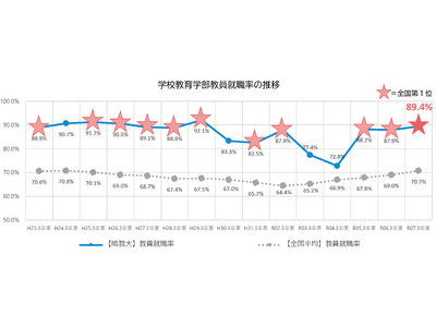 鳴門教育大学(徳島県鳴門市、学長:佐古 秀一)は、文部科学省が公表した「国立の教員養成大学・学部の令和7年3月卒業者の就職状況等」において、教員就職率89.4%*を記録し、