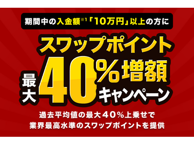 株式会社外為どっとコム(本社:東京都港区、代表取締役社長:竹内 淳)は、店頭FX『外貨ネクストネオ』におきまして、2025年12月29日(月)より「スワップポイント最大40%増額キャンペーン」を実施します。