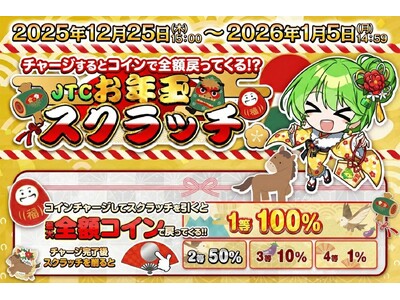 目玉企画となる「JTCお年玉スクラッチ」は、期間中にコインをチャージするだけで参加できるハズレなしの還元イベントです。