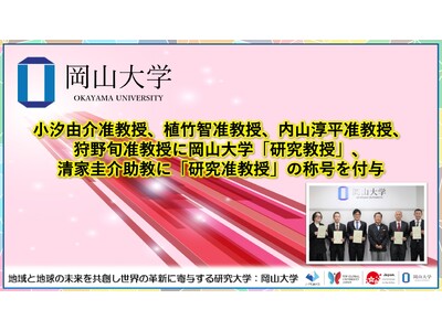 【岡山大学】小汐由介准教授、植竹智准教授、内山淳平准教授、狩野旬准教授に岡山大学「研究教授」、清家圭介助教に「研究准教授」の称号を付与