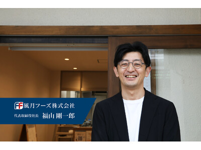 風月フーズ株式会社 代表取締役社長 福山剛一郎 本社ビルに併設の「みんなのnefu」店頭にて