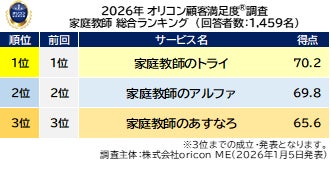 『家庭教師』総合ランキング(2026年 オリコン顧客満足度(R)調査)