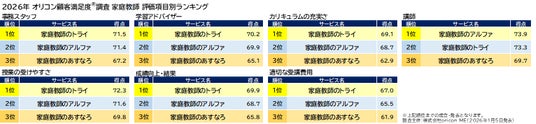 『家庭教師』評価項目別ランキング(2026年 オリコン顧客満足度(R)調査)