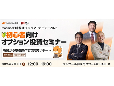 ~総勢20名の専任スタッフがあなたの操作を徹底サポート。知識ゼロからオプション取引スキルが身につく1日集中講座~国内でアプリダウンロード数200万件(※2)を突破し、世界2,800万人(※3)が利用する次世代投資アプリを提供するmoomoo証券株式会社(ムームー、本社:東京都渋谷区、代表取締役社長:伊澤フランシスコ、以下「moomoo証券」)は、2026年2月7日(土)開催の初心者特化型イベント「moomoo 日米株オプションアカデミー2026」の公式ウェブサイトを本日公開いたしました。本イベントは日本取引所グループ(JPX)との共同開催であり、このたび追加登壇講師として、SNSで絶大な支持を得る投資インフルエンサー「ちょる子氏」の登壇が決定したことをお知らせします。2月7日(土)開催「moomoo 日米株オプションアカデミー2026 」公式サイトにてタイムテーブル公開:参加申込もスタート「moomoo 日米株オプションアカデミー2026 」タイムテーブル本日公開された公式サイトでは、タイムテーブルや、当日に向けた「事前準備ガイド」を掲載。また、本日より参加申込(無料)の受付も開始いたします。- 申込受付はこちら: https://start.moomoo.com/0z7DV6- 掲載内容: イベント概要、豪華キャンペーン情報、セミナー講師プロフィール、タイムテーブル、参加方法、会場アクセスなど初心者の「わからない」を「できる」に変える、本イベントの2つの特長本アカデミーは、「オプション取引に興味はあるけれど、自分には難しそう…」と踏み出せずにいた投資家のための、日本最大級(※1)の初心者向け集中講座です。「moomoo 日米株オプションアカデミー2026 」2つの特徴- 豪華講師陣から学ぶ、一生モノのスキル本イベントの講師には、江崎孝彦氏、守屋 史章氏、田端 信太郎氏、そして新たに決定したちょる子氏という、オプション界のトップランナーが集結。初心者が明日からオプション取引を始めるのに最適な「3つの戦略」を伝授します。- 総勢20名の専任スタッフが「あなたの隣で」操作をサポート最大の特徴は、会場に配置された20名の専任スタッフによる徹底的な画面操作(取引操作)サポートです。「この画面の見方は?」「どのボタンを押せばいいの?」といった不安をその場で解消。参加者全員が、セミナー終了時に「自分一人で注文できる」状態になることを目指します。来場で必ずもらえる!「明日からオプション取引」を支える4大豪華特典当日、会場にお越しいただいた皆様には、オプション取引のスタートを強力にバックアップする以下の特典を必ずプレゼントいたします。来場で必ずもらえる!4大豪華特典- 守屋史章氏 著書『オプション投資の世界』講師の守屋氏による、初心者のためのバイブルを1冊丸ごとプレゼント- 米国株オプション取引手数料・3ヶ月分キャッシュバック学んだ知識をすぐ実践。コストを気にせず取引を始められる特別キャンペーンをご用意- moomoo×JPX オリジナルコラボグッズここでしか手に入らない、日本取引所グループとの限定デザイングッズ- オプション取引 完全ガイドブック(moomoo監修)アプリの操作からリスク管理まで、日米株オプション取引を凝縮したオリジナルテキスト※『オプション投資の世界』は先着500名様となります追加登壇講師:ちょる子氏の参加が決定ちょる子氏 参加決定初心者目線に立った分かりやすい発信で人気の投資家、ちょる子氏の登壇が決定しました。 日本株オプションは経験がありつつも、米国株オプションは未経験のちょる子氏。参加者と同じ初心者目線でご登壇いただくことで、投資経験が浅い方でもリラックスして学べるプログラムへと進化します。【ちょる子氏 プロフィール】親の影響を受け、2011年に240万円から株主優待を目当てに株式投資をスタート。2019年から育児休暇をきっかけに、大型株のスキャルピングやスイングトレー ドを開始。職場復帰後の2022年に資産1億円を達成。2025年には資産3億円を突破した30代の兼業投資家。育児に励む2児のママでもある。育児と仕事、そして投資のバランスを取りながら、日々奮闘中。趣味は爆損芸。X(旧 Twitter):@kabu_st0ck【登壇講師一覧】江崎 孝彦 氏(株式会社Wealth On 代表取締役)守屋 史章 氏(守屋オプションスクール代表講師)田端 信太郎 氏(アクティビスト個人投資家)ちょる子 氏(個人投資家)イベント概要■名称:moomoo 日米株オプションアカデミー 2026 ~知識ゼロから気軽にスタート!初心者向け基礎セミナー~■開催日時:2026年2月7日(土) 12:00~19:00 (予定)■会場:ベルサール御成門タワー4階 HALL D■対象:オプション取引に興味がある初心者の方■参加費:無料■参加人数:800名限定■備考:本イベントは会場への入場に無料でご登録いただけるmoomooアカウント登録が必要となります。事前にダウンロードしていただけると当日の入場がスムーズです。★アプリの事前ダウンロードはこちら→ https://moomoo.com/jp/download業界唯一(※4) 日米株オプション、両方取引できるのはmoomoo証券だけmoomoo証券は、日本株オプションと米国株オプション、その両方の取引を