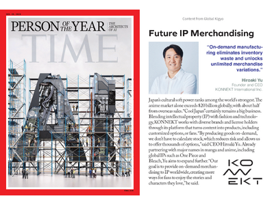 ファッション、テクノロジー、IP(知的財産)を融合させたソリューションを提供する株式会社コネクト・インターナショナル(本社:東京都港区、代表取締役:由羽 弘明、以下「当社」)は、世界で最も影響力のあるメディアの一つである米国週刊誌「TIME」2025年12月19日発売号に、代表・由羽のインタビュー記事が掲載されたことをお知らせいたします。本記事では、日本が誇るアニメなどの強力なIPを、オンデマンド製造という革新的な手法で世界へ展開する当社のビジョンと戦略について紹介されています。