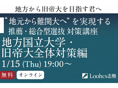 総合型選抜・学校推薦型選抜専門塾「ルークス志塾」(運営:株式会社Loohcs、本社:東京都渋谷区)は、国公立大学を志望する高校生を対象に、推薦・総合型選抜入試の対策を解説する無料オンラインイベントを、2026年1月15日(木)に開催いたします。