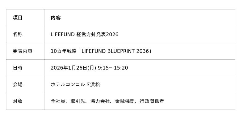 株式会社LIFEFUND、10カ年戦略「LIFEFUND BLUEPRINT 2036」を2026年1月発表--売上150億円・年間436棟・社員一人当たり売上1億円を目指す。