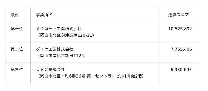通算スコア部門入賞事業者