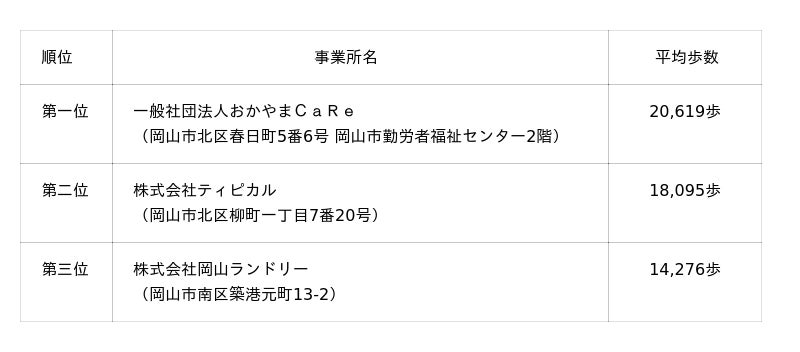 平均歩数部門入賞事業者