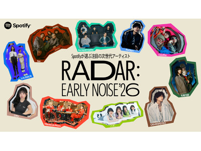 世界で7億1300万人以上が利用するオーディオストリーミングサービス Spotify(会社名 Spotify AB / 本社 Stockholm、Sweden)は、今年躍進が期待される注目の新進国内アーティスト10組を「RADAR: Early Noise 2026」として選出しましたので発表いたします。Spotifyは今回選出した10組を、プレイリストやライブイベント、またアーティストの魅力を伝える様々なコンテンツやコラボレーション企画などを通じて、国内外の音楽ファンに積極的に紹介してまいります。