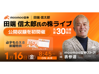 国内でアプリダウンロード数200万件(※1)を突破し、世界2,800万人(※2)が利用する次世代投資アプリを提供するmoomoo証券株式会社(ムームー、本社:東京都渋谷区、代表取締役社長:伊澤フランシスコ、以下「moomoo証券」)はこの度、個人アクティビスト投資家でYouTuberの田端信太郎氏が毎朝配信するYouTubeライブコンテンツ「株ライブ(田端大学 投資学部)」と連携した協業企画を、2026年1月13日より開始します。本取り組みでは、moomoo証券と田端氏それぞれの専門性と発信力を掛け合わせ、企業価値の捉え方や投資判断の思考プロセスを、リアルタイムかつ実践的に共有することを目的としております。株式市場を「結果を見る場所」ではなく、「考えながら参加する場所」として捉え直す試みです。