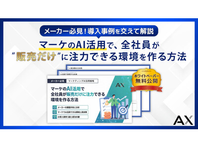 株式会社AX(本社:福岡県福岡市、代表取締役CEO:石綿文太)は、メーカー企業向けホワイトペーパー「マーケのAI活用で、全社員が“販売だけ”に注力できる環境を作る方法」を無料公開しました。
