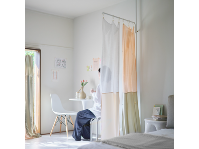 「かさね」は、カーテンにも、間仕切りにもなる フリーサイズのテキスタイル。