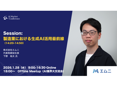 最適なAI会社やAIサービスの選定を支援するコンシェルジュサービス「AI Market」を運営するBizTech株式会社(東京都豊島区、代表取締役 森下 佳宏)が主催する、1月28日開催の国内最大級AIカンファレンス『AI Market Conference 2026』に登壇する株式会社エムニ 下野 祐太氏の講演内容をお知らせ致します。