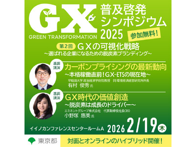 東京都では、都内中小企業等の脱炭素化を促進するため、都内の中小企業や都民の皆様などを対象に、企業がGXに取り組むメリットや先進的な取組事例等を紹介する「GX普及啓発シンポジウム」を開催しています。このたび、「GXは企業戦略~選ばれる企業になるための脱炭素ブランディング~」をテーマに、令和7年度第2回シンポジウムを開催します。ぜひご参加ください。