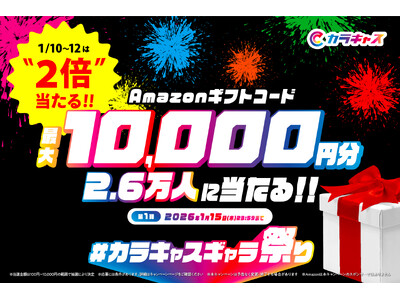 カラフルキャスティング株式会社(本社:東京都渋谷区、代表取締役:松本豊季)が運営する、誰でも無料で登録できる「プロフィール」を軸に、企業と個人、個人とファンを繋ぐエンタメアプリ「カラキャス」は、現在開催中の大規模プレゼントキャンペーン「#カラキャスギャラ祭り」において、1月10日(土)から1月12日(月・祝)の3連休限定で、当選本数を通常の2倍に設定することをお知らせいたします。