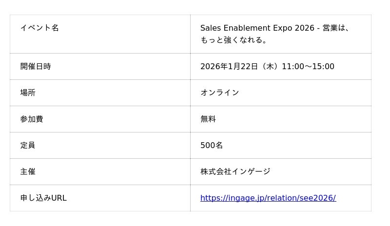 この「仕組み化」と「AI活用」をさらに深掘りするオンラインイベントを、1月22日(木)に開催いたします。2026年の営業戦略をアップデートし、持続的な成長を実現するための具体的なヒントをお届けします。