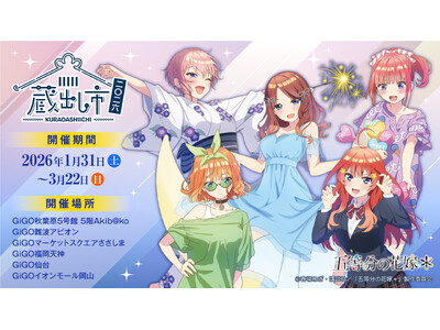 株式会社GENDA GiGO Entertainment(本社:東京都港区 代表取締役社長:二宮 一浩、以下「当社」)と、株式会社andBlue(本社:東京都千代田区 代表取締役社長:兼光 一博)は、GiGOグループのお店において、2026年1月31日(土)より、「TVスペシャルアニメ『五等分の花嫁*』~AU-COOP 蔵出し市 2026~」を開催いたします。