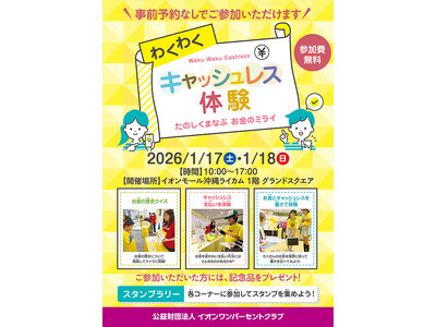 当財団は、子どもたちにキャッシュレスの利点について肌で学んでいただくことを目的に、イオンフィナンシャルサービス株式会社ご協力のもと、金融教育イベント「わくわくキャッシュレス体験~たのしくまなぶ お金のミライ~」を開催いたします。