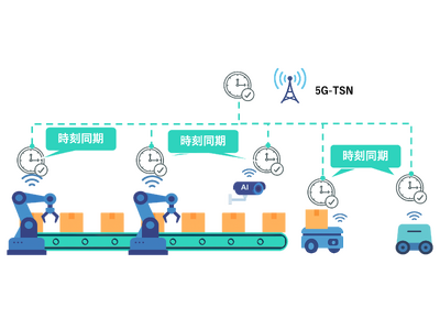 5G-TSNは、工場内のロボット、AGV、AMR、ドローン、AIカメラなどの産業機器をワイヤレスで1μ秒以下の高精度時刻同期により接続し、リアルタイムな協調制御を可能にすることで、「完全ワイヤレス工場」 を実現する次世代の産業ネットワーク技術です。