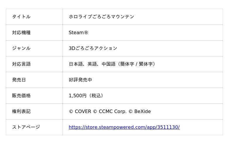株式会社ビサイド(本社:東京都立川市、代表取締役社長:南治 一徳、以下ビサイド)は、現在Steam(R)にて配信中の『ホロライブごろごろマウンテン』において、大型アップデートとなるVer2.0および、2つの新規コラボDLCの配信を開始したことをお知らせいたします。