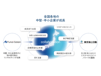 東京海上日動と船井総合研究所は、それぞれ異なる視点から企業の課題を捉え、成長機会の創出とリスクへの対応を一体で伴走支援することで、大企業と比較してリソースの限られる中堅・中小企業の持続的な成長を支援できると考え、本連携に至りました。