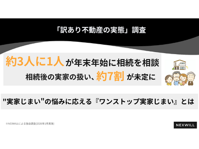 実家じまいなど相続に伴う不動産課題を”ワンストップで対応”する訳あり不動産買取事業「ワケガイ」を展開する株式会社ネクスウィル(本社:東京都港区新橋 代表取締役:丸岡 智幸)は、東京在住の600名を対象に、年末年始の帰省シーズンにおける「実家じまい」に関する意識調査を実施しました。